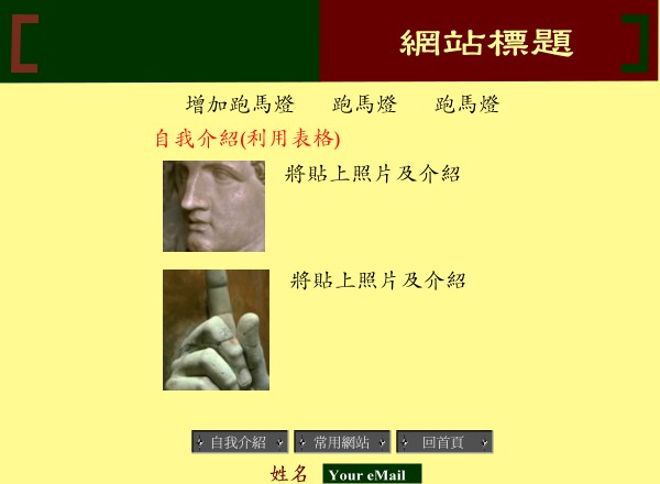 請依圖示做出以下網頁(而內容或圖示請自行掃描或上網抓)