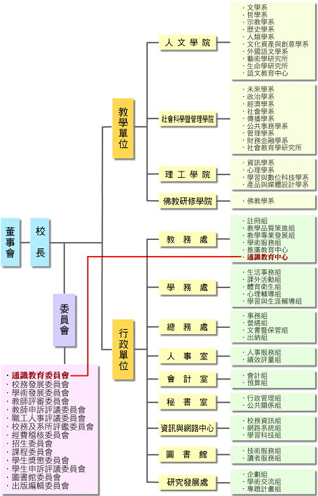 通識教育專業專責單位行政層級圖