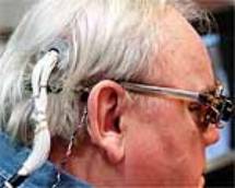 紐約一位因眼球受傷而失明了二十六年的盲人傑利,戴上裝有微型攝影機的眼鏡後,透過腰間小型電腦,便能將視訊傳給植入大腦的電極,而看見大型字母,並可進一步操作電腦。傑利用這一套裝備行走時,也能自行繞過大型物體,還可自行搭地鐵。這可說是第一種讓盲人擁有可用視力的人工眼。雖然傑利恢復的視力,還差正常視力很多,但已經帶給他生活上極大的便利了。請參見圖4-4。